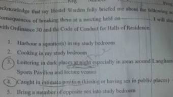 Amri hiyo ilitolewa mwanzoni mwa mwaka wa masomo kama sehemu ya orodha ya vitendo vya utovu wa nidhamu ambavyo vinahitaji hatua za haraka kuchukuliwa kutoka mabweni ya wanafunzi".